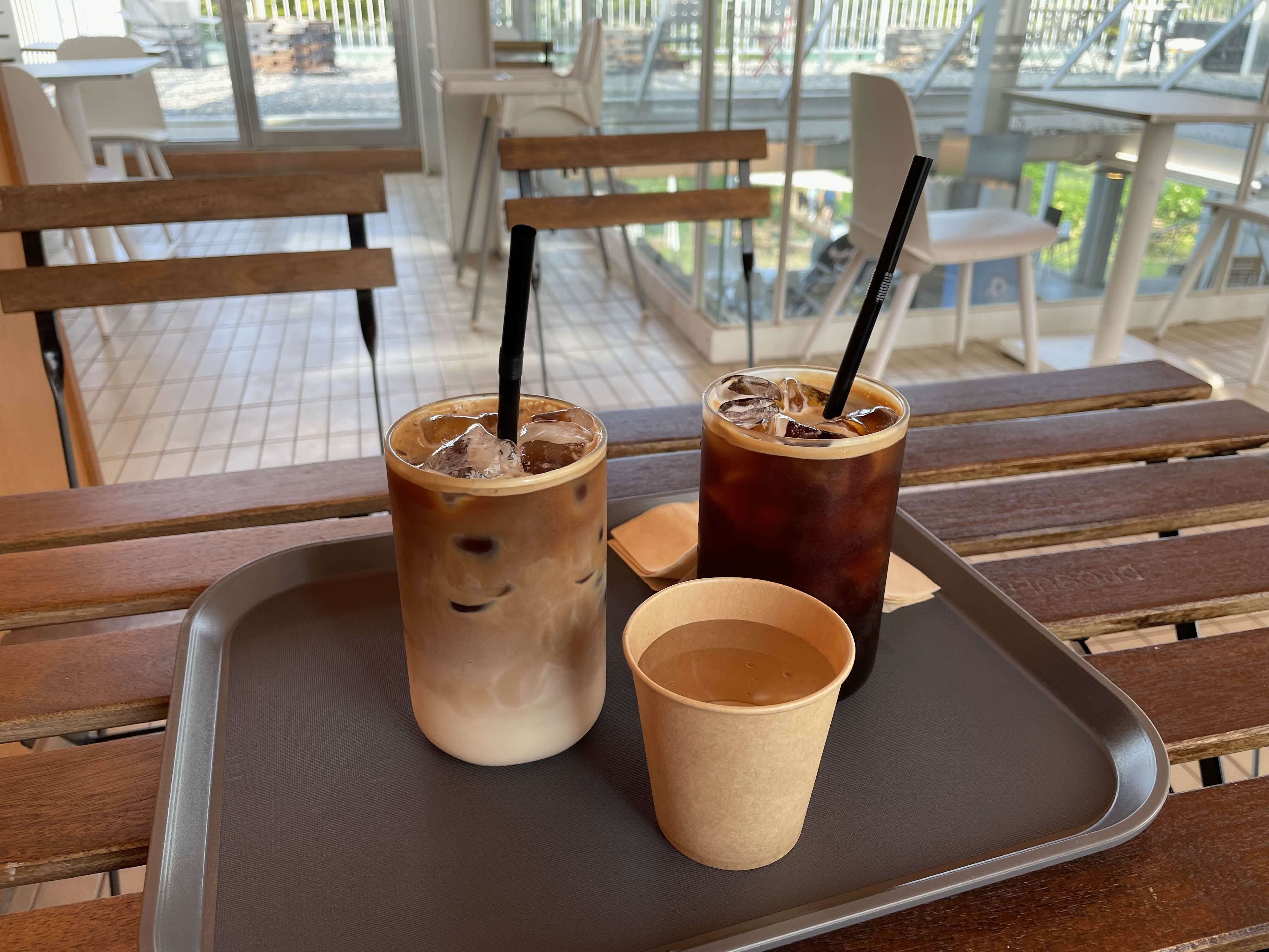 카페라테(두유 변경), 아이스 아메리카노를 주문했어요