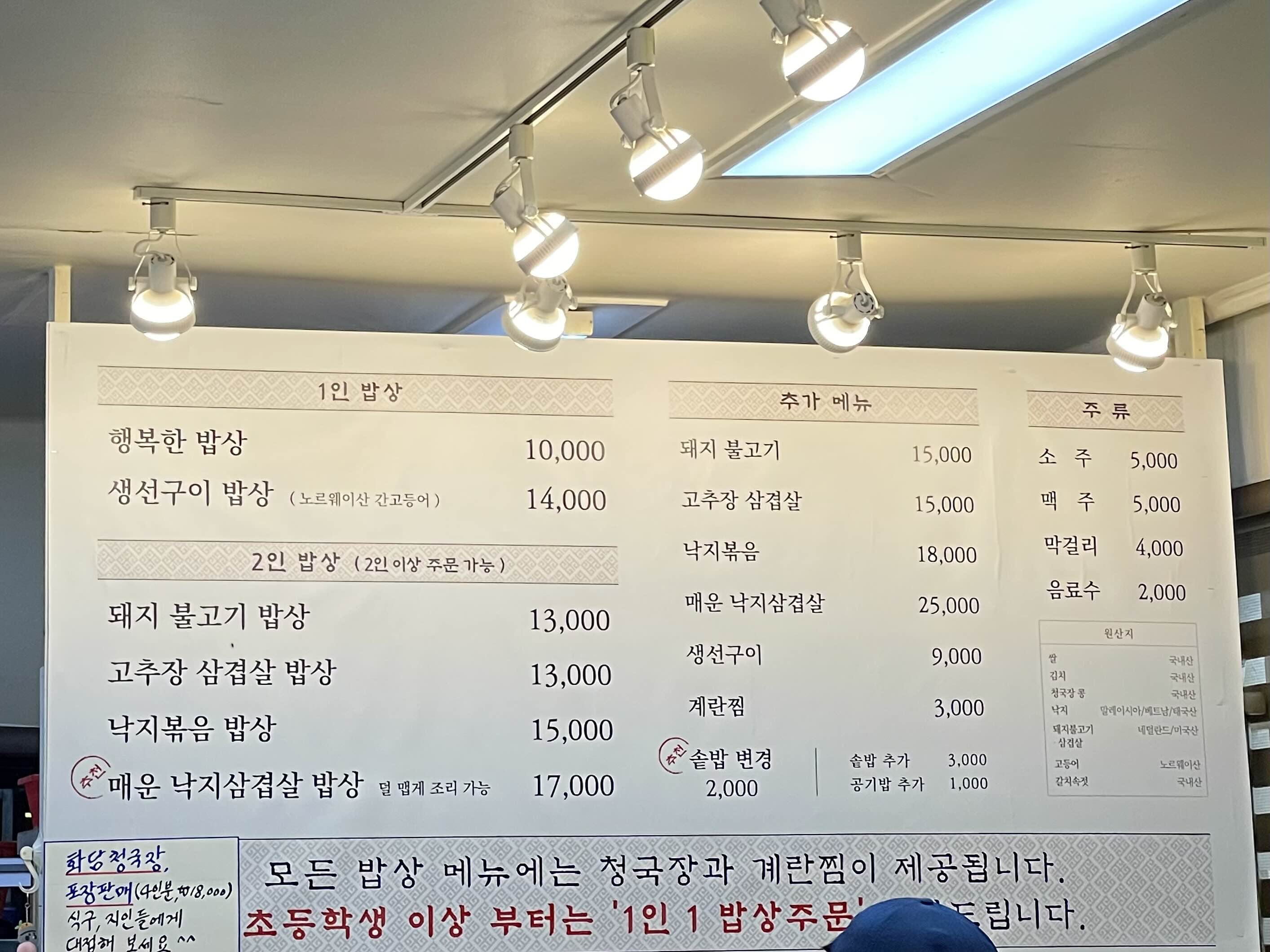 모든 밥상 메뉴에는 청국장과 계란찜이 제공됩니다!