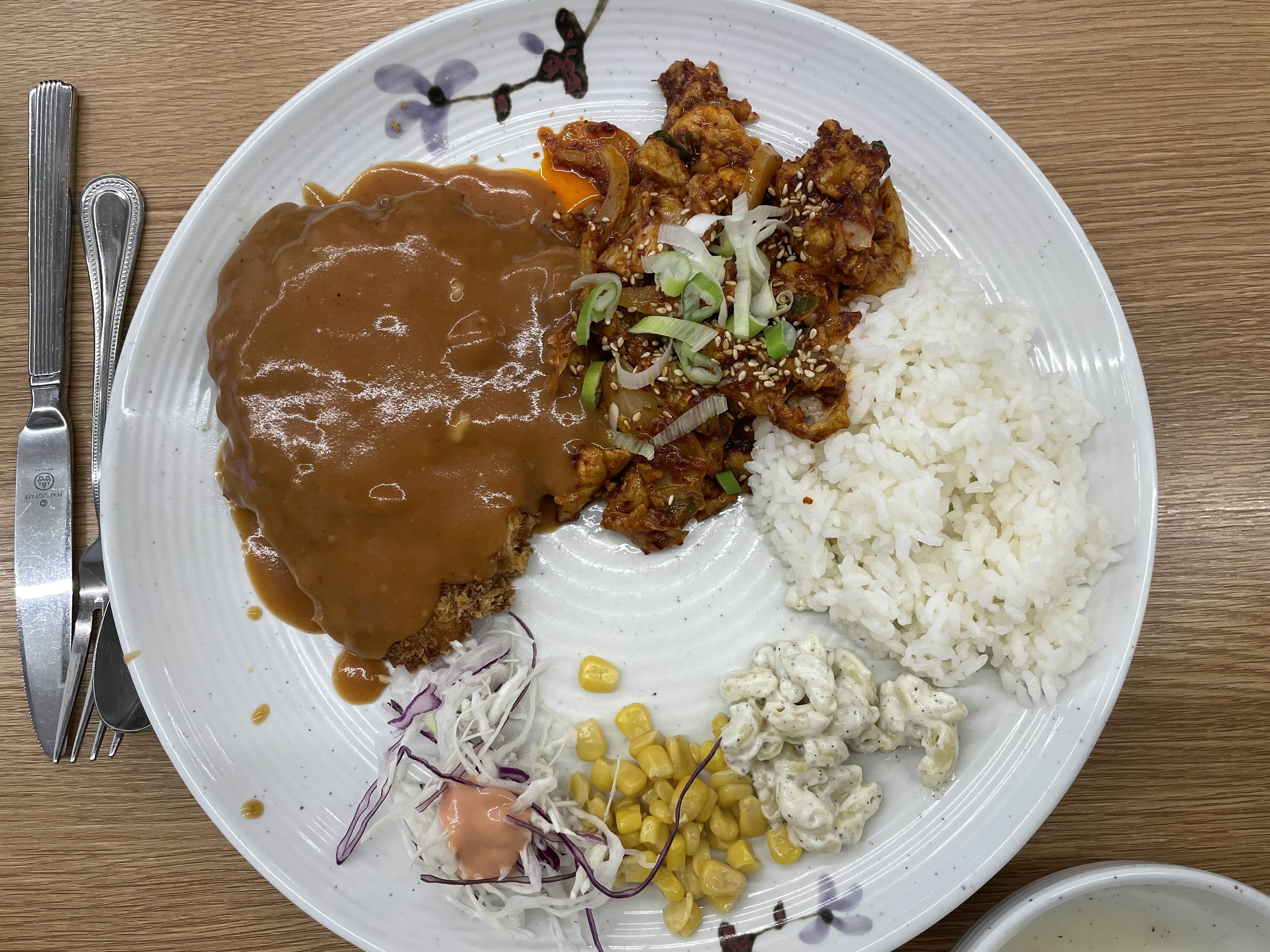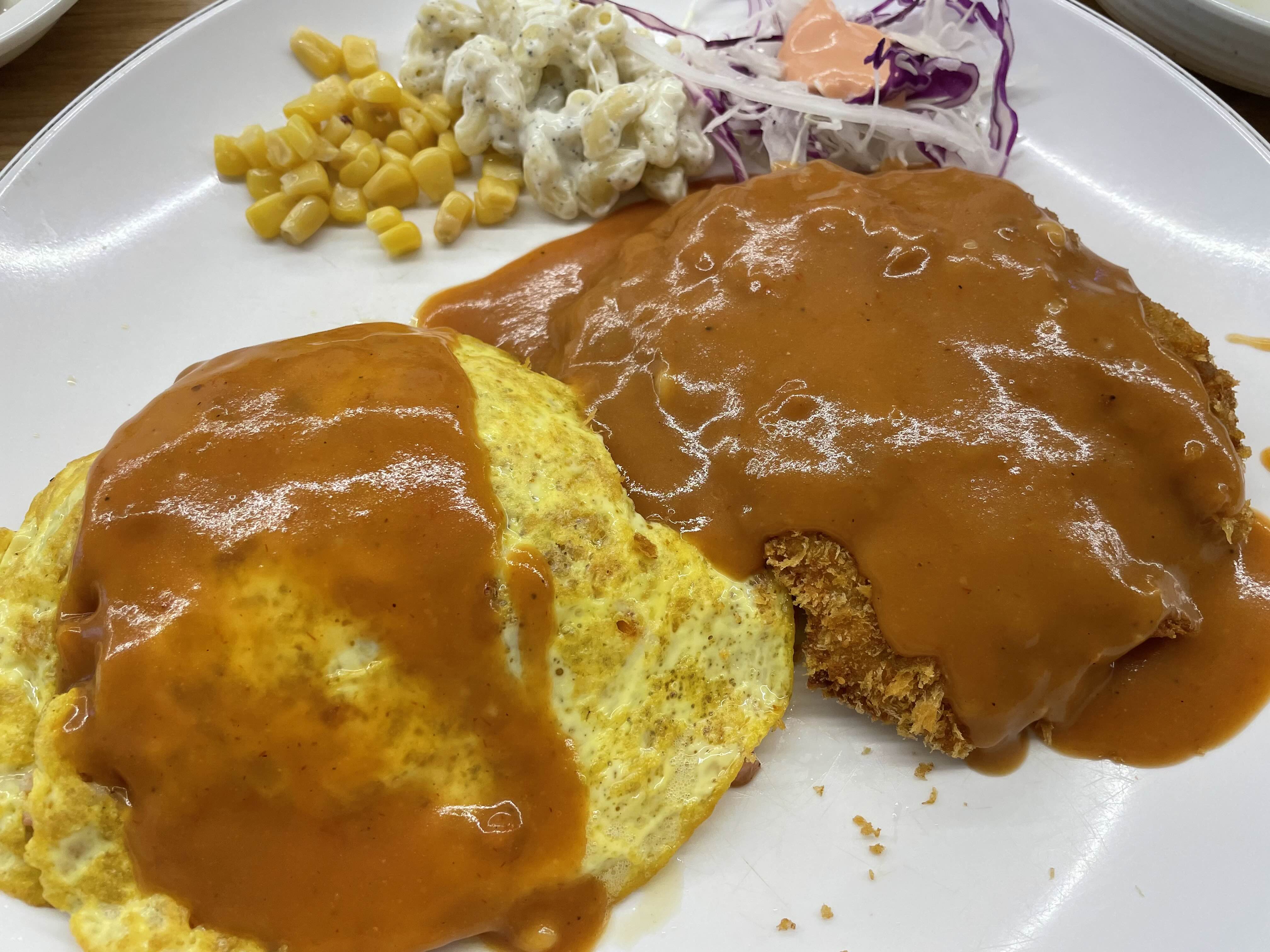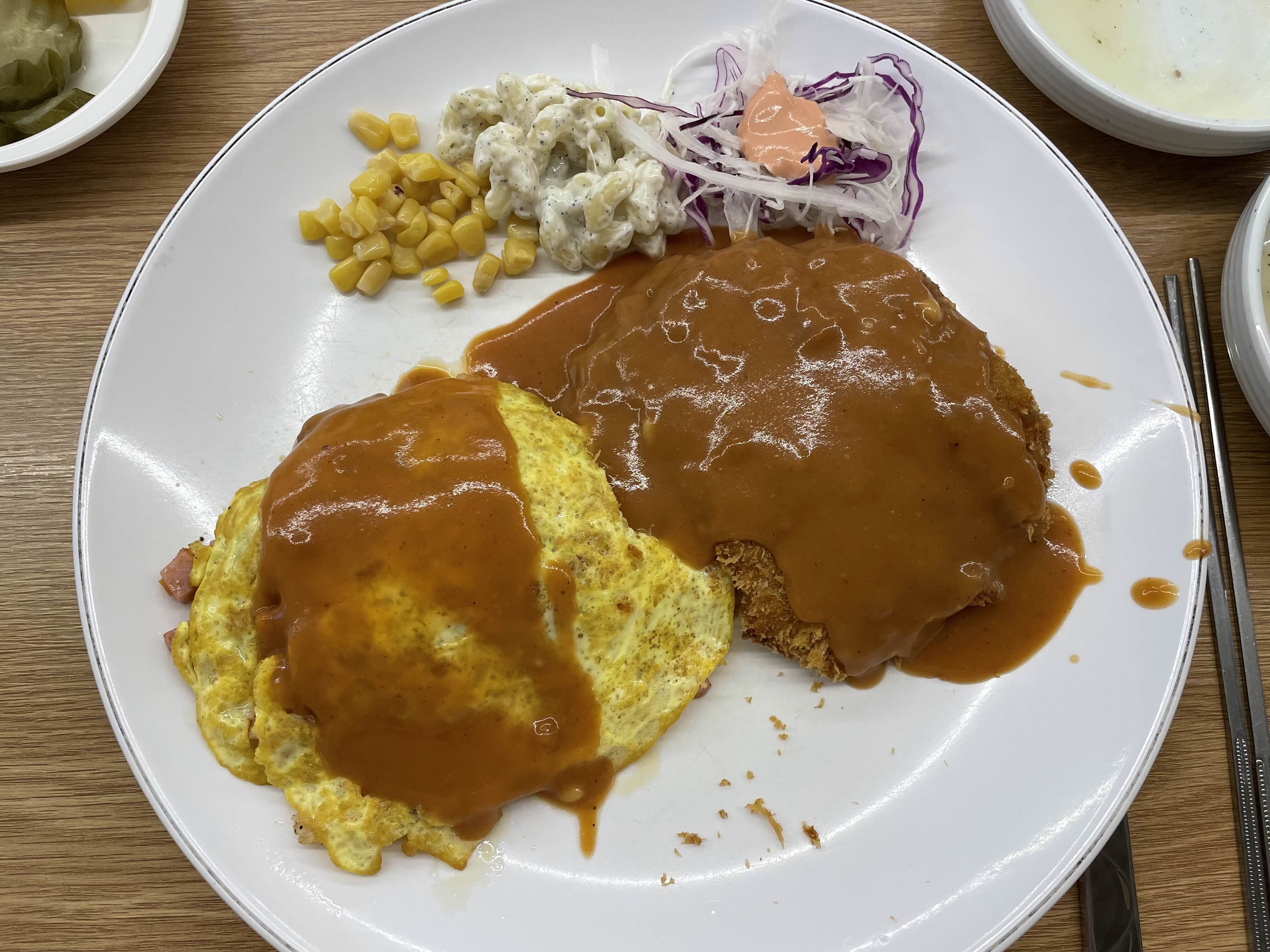 저희는오므라이스+돈까스, 제육볶음밥+돈까스