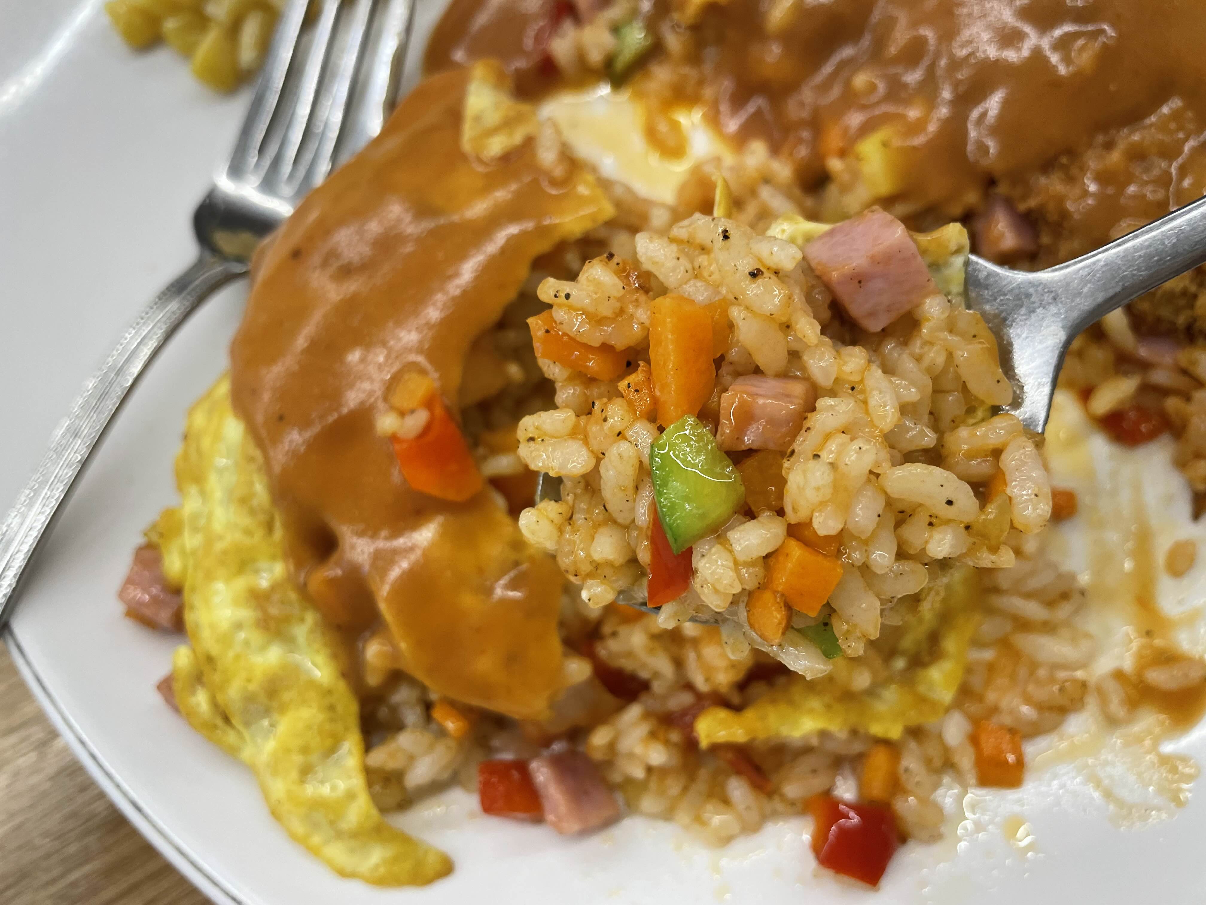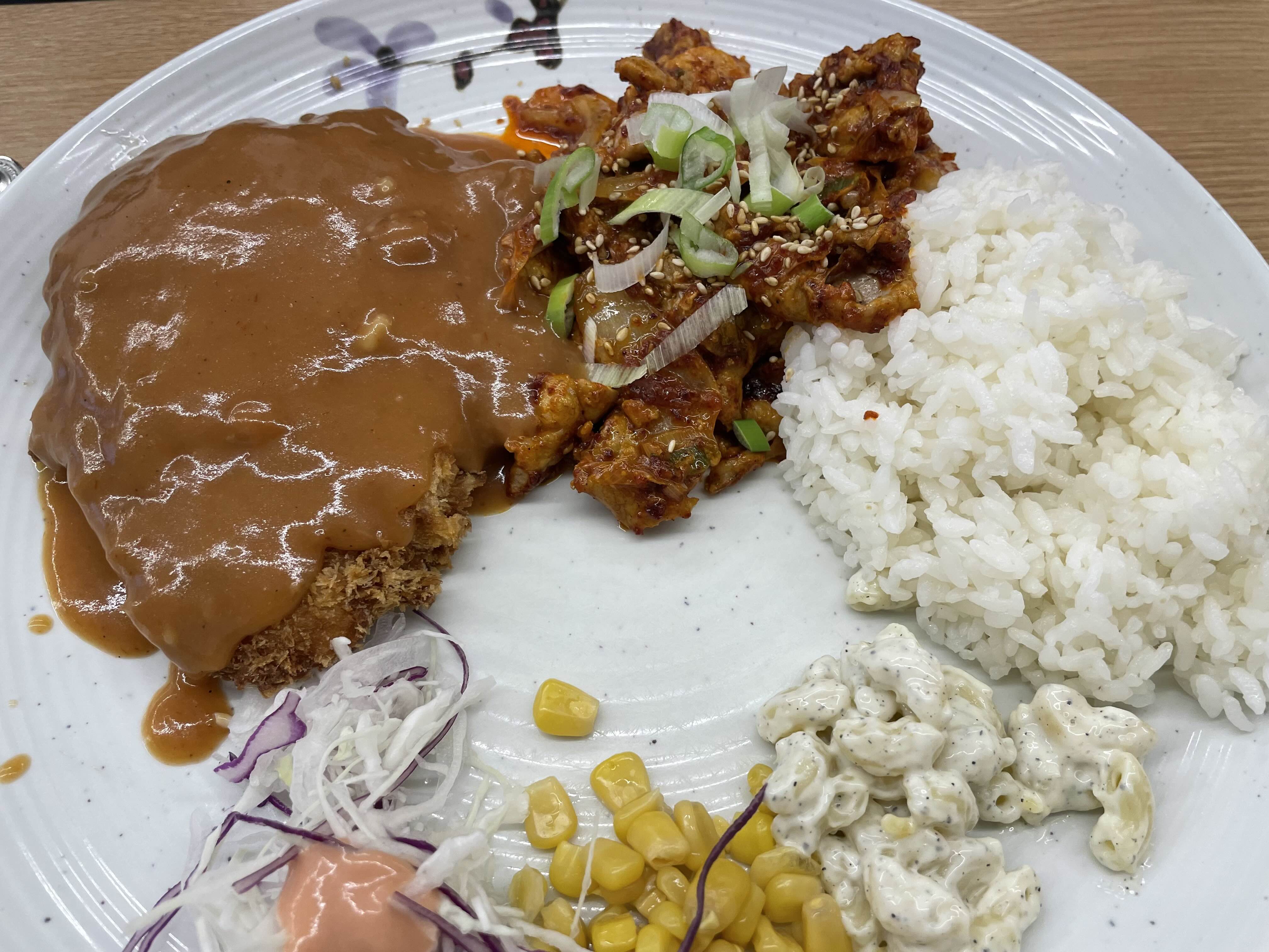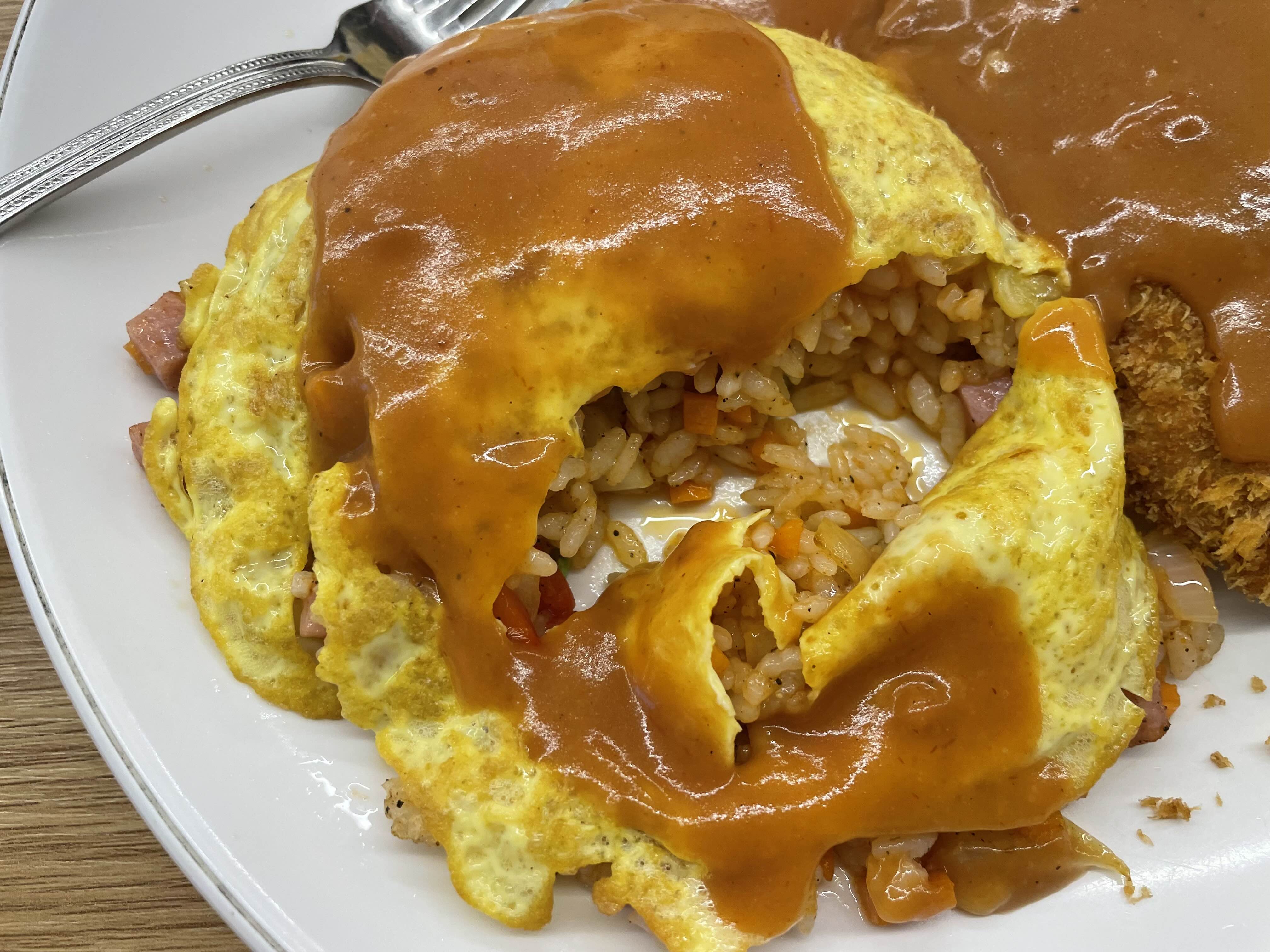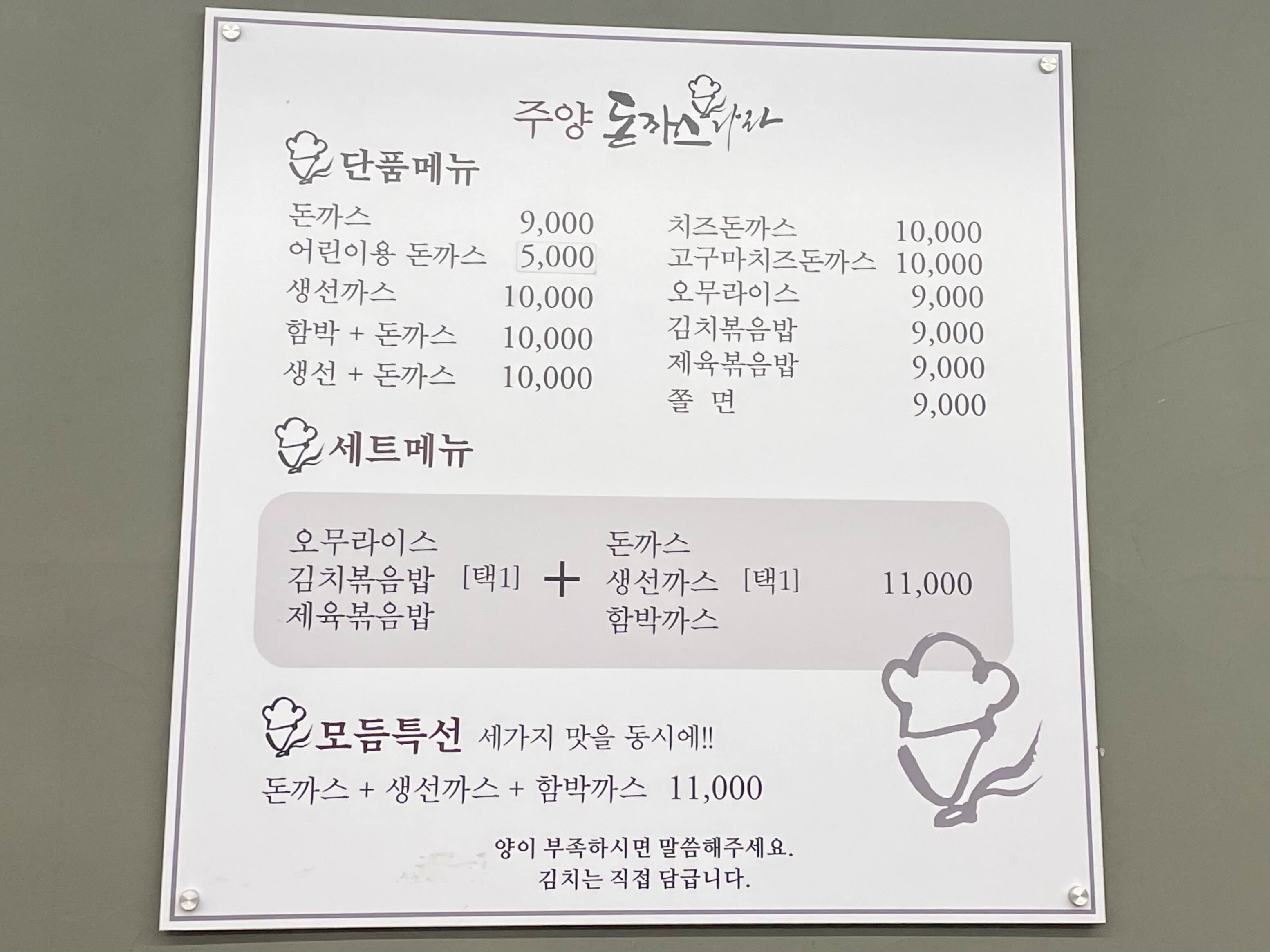 저희는오므라이스+돈까스, 제육볶음밥+돈까스