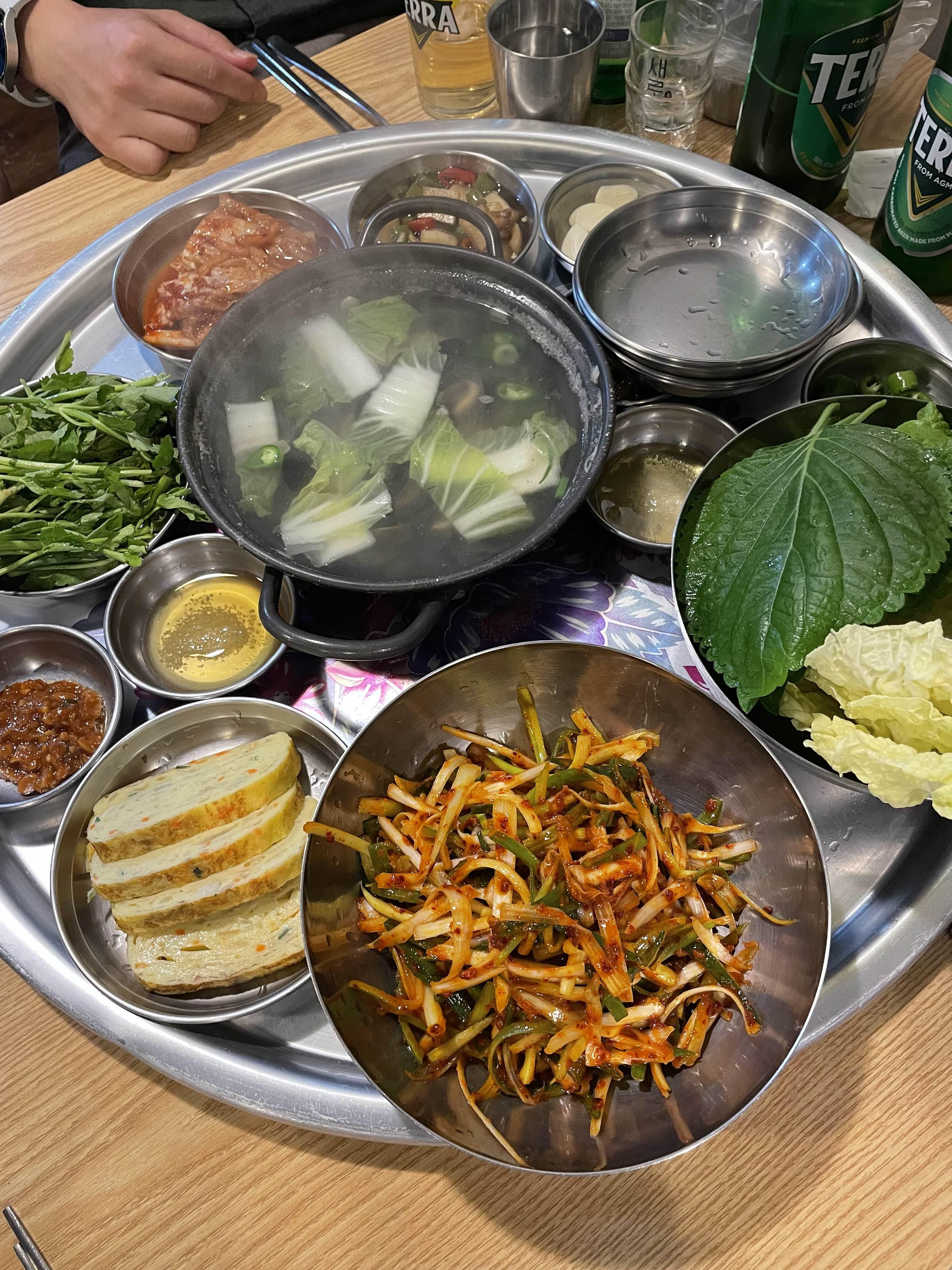 파절임도 양념이 너무 맛있었고요! 미나리가 나와서 좋았어요 사실 미나리를 아예 못 먹었는데(향 때문에ㅠ) 나이를 먹어서 그런가 요즘엔 너무 맛있더라고요.....