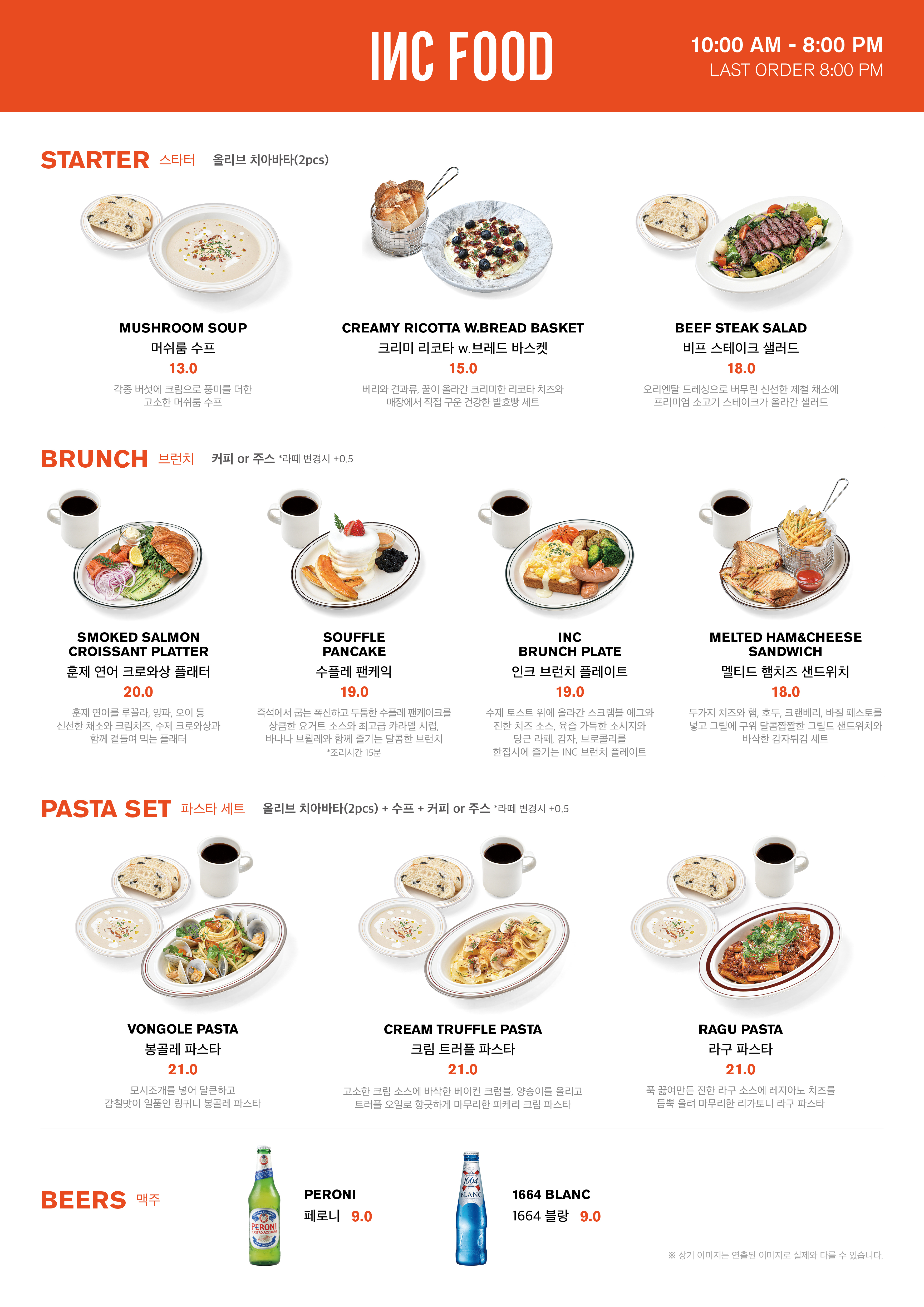 커피와 베이커리 말고도 브런치, 샐러드, 파스타, 맥주 등 다양하게 있다