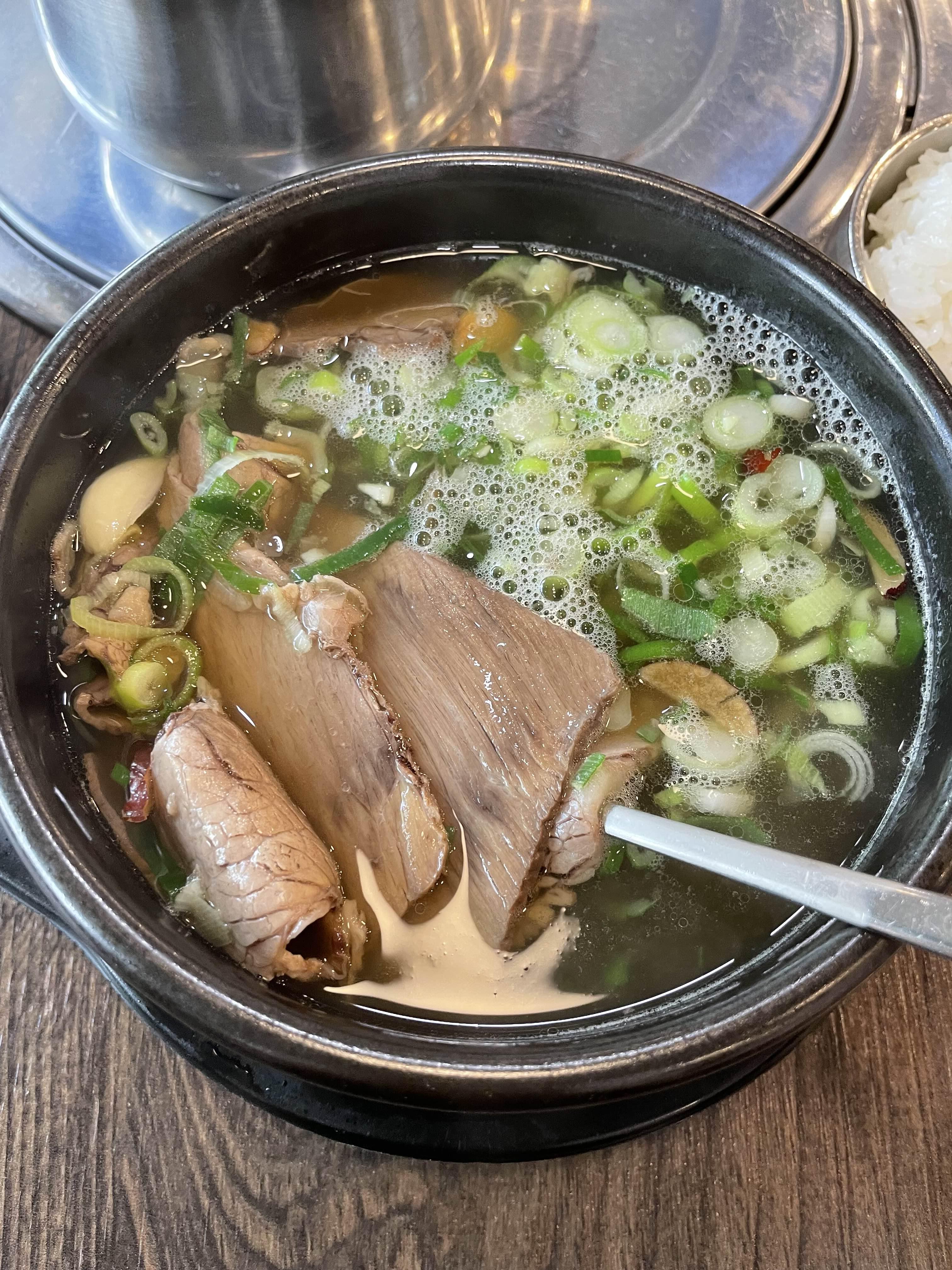 양지곰탕이 나왔습니다 국물은 약간 간장맛..? 제 기준 좀 짰어요ㅠ 그치만 국물은 맛있었어요
