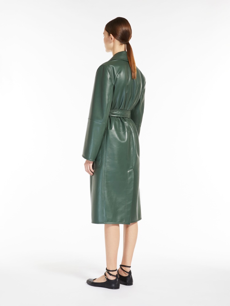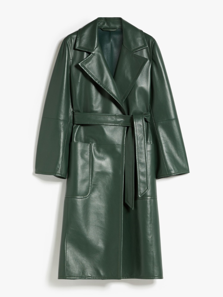 이 코트는 부드러운 나파 가죽으로 제작되었고 안감이 없는 디자인이며