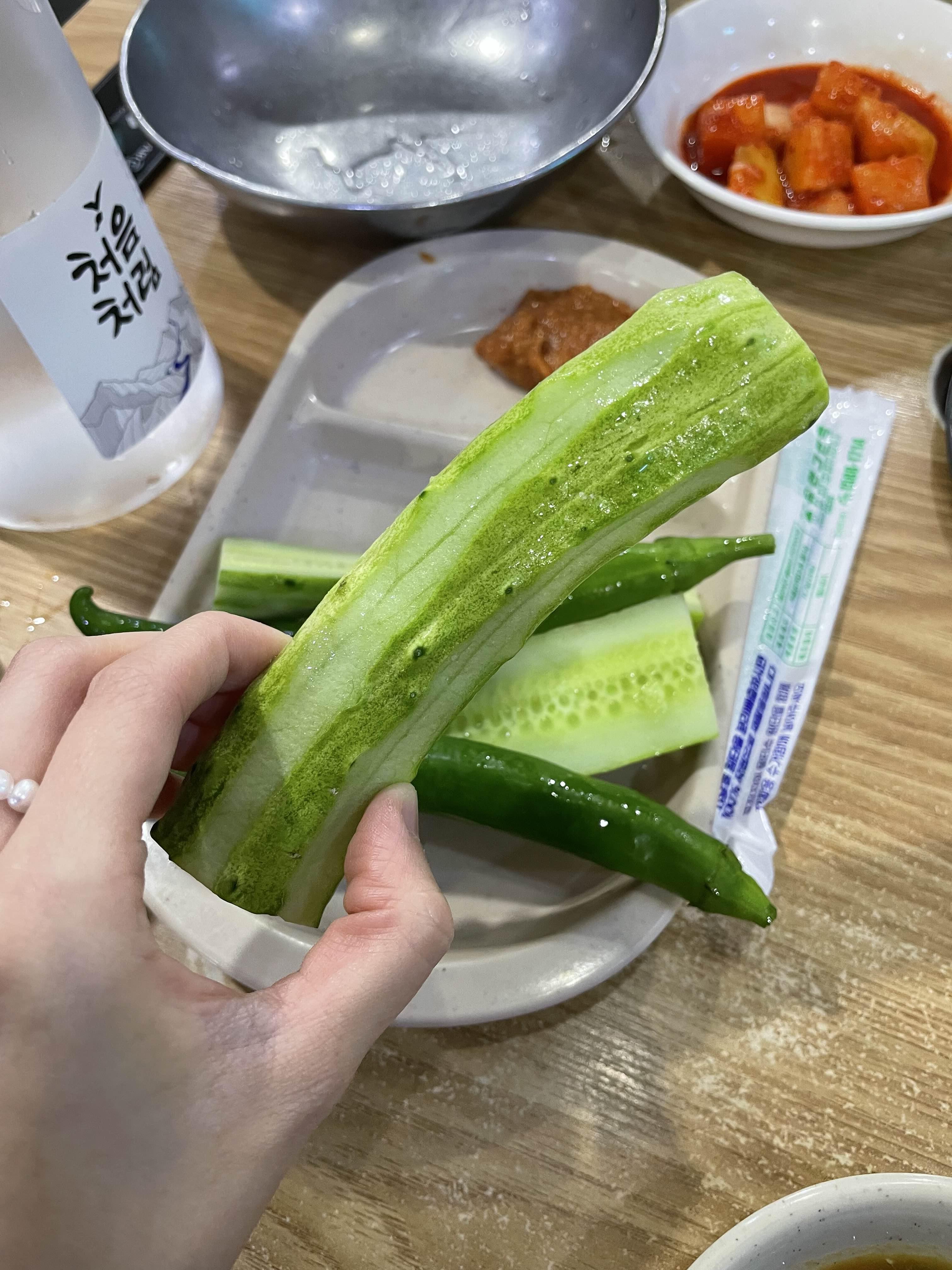 오이러버는 크기를 보고 아주 만족했습니다..😆 감자탕 나오기 전에 오이 흡입