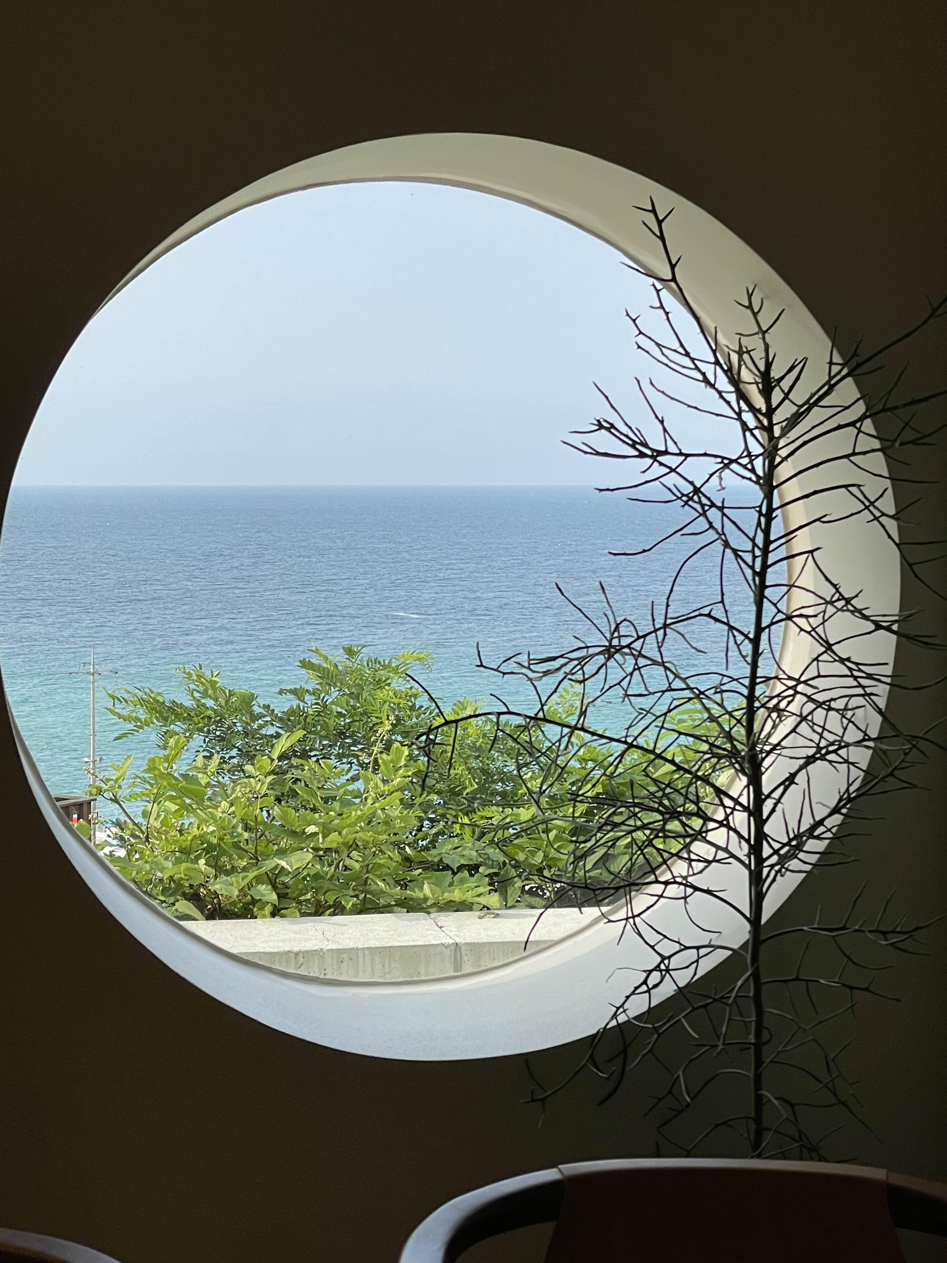 부엌 바로 옆 창문 뷰인데 여기도 바다가 보여서 좋아요